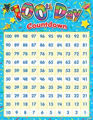 5 Best Images of From 100 Countdown Printable Printable 100 Day Countdown Chart, 100 Day