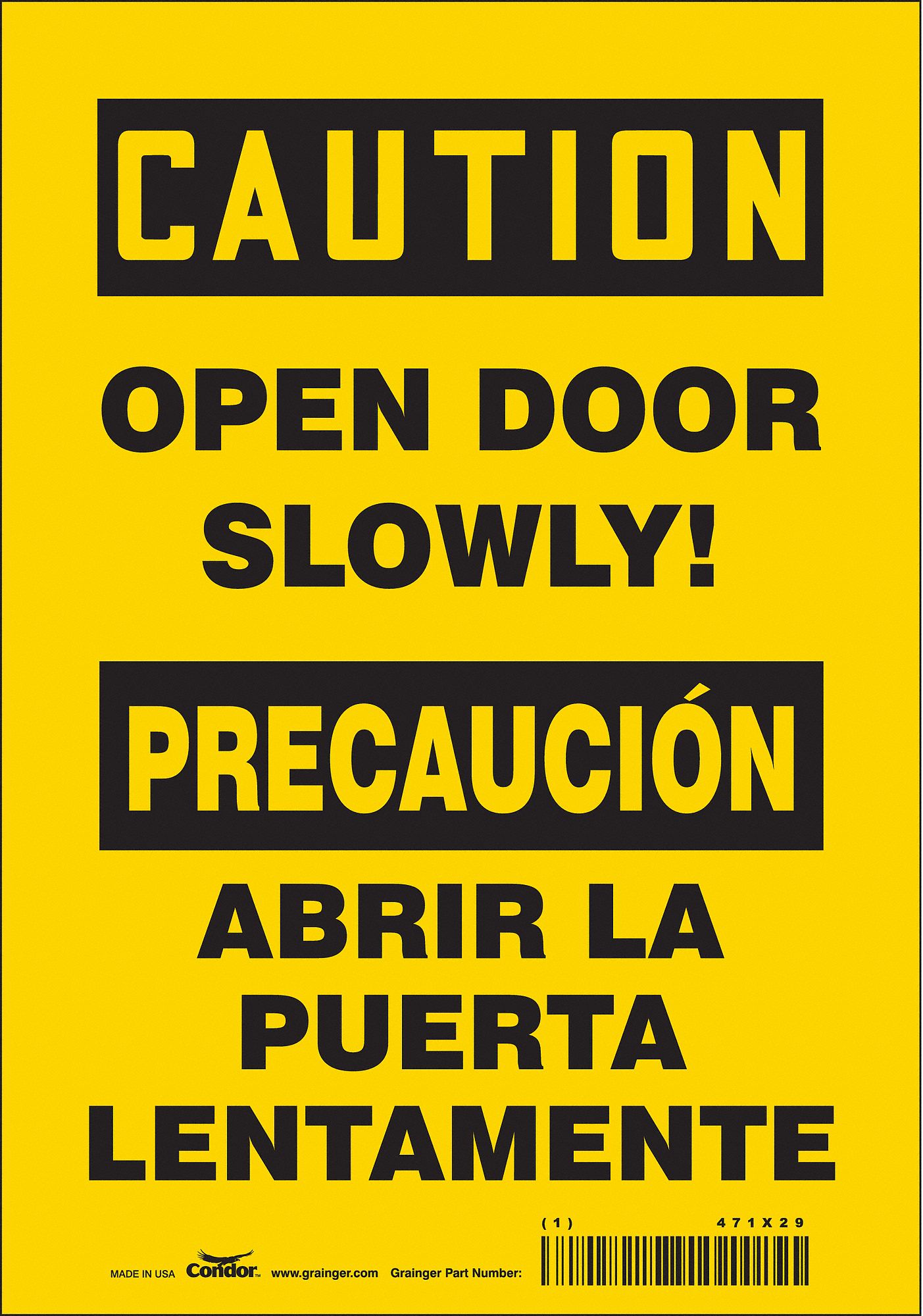 CONDOR Safety Sign, Open Door Slowly!/Abrir La Puerta Lentamente, Sign Header Caution/Precaucion