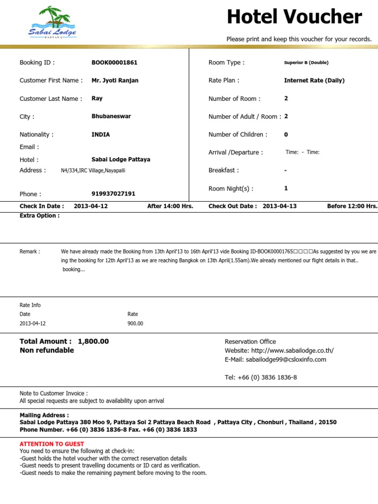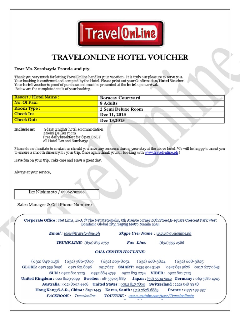 Free Printable Hotel Vouchers