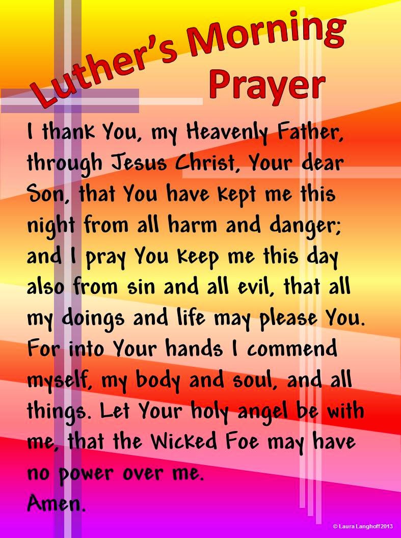 If i were ever without. Web luther's morning prayer my heavenly father, i thank you, through jesus christ, your beloved son, that you kept me safe from all evil and danger last night. And i pray that you would forgive me all my sins where i.