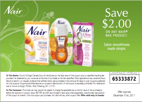 Nair Canada Printable Coupons Save 2.00 on Any Nair Wax Product + Save 1.00 on Any Nair Cream