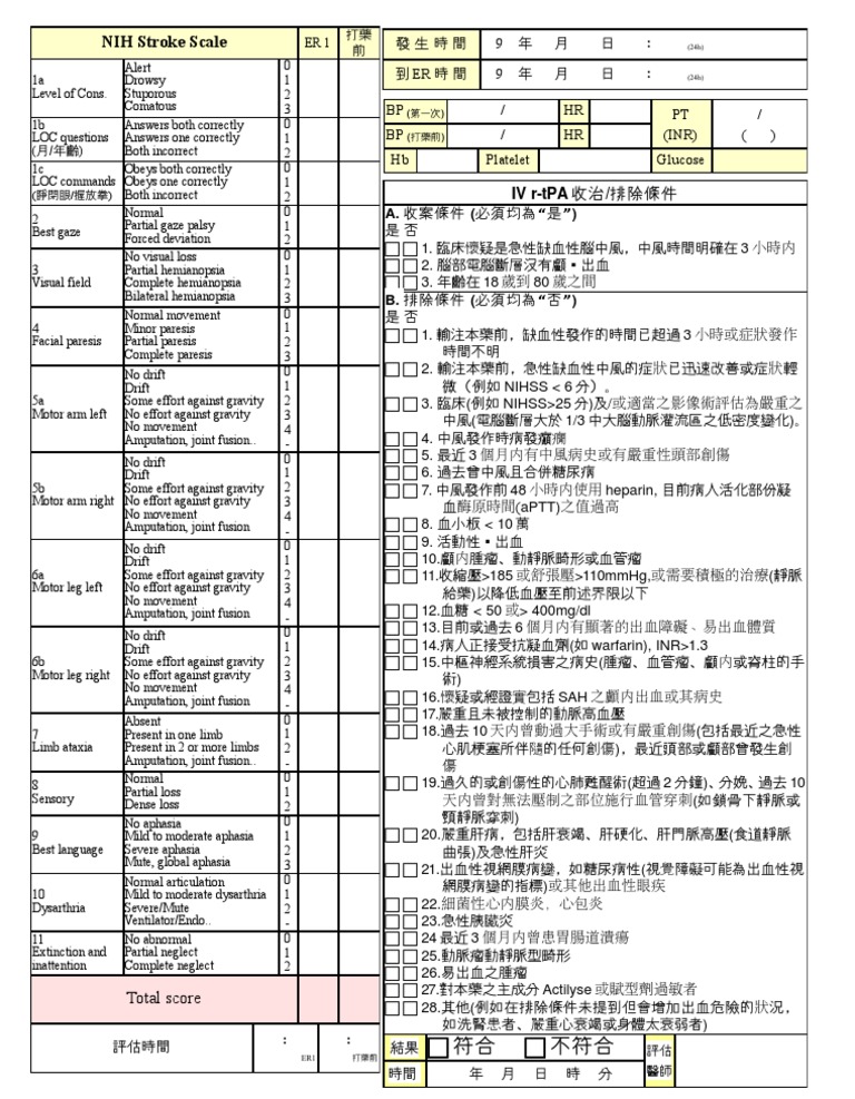 NIH Stroke Scale Neurological Assessment Flow Sheet Senses Color