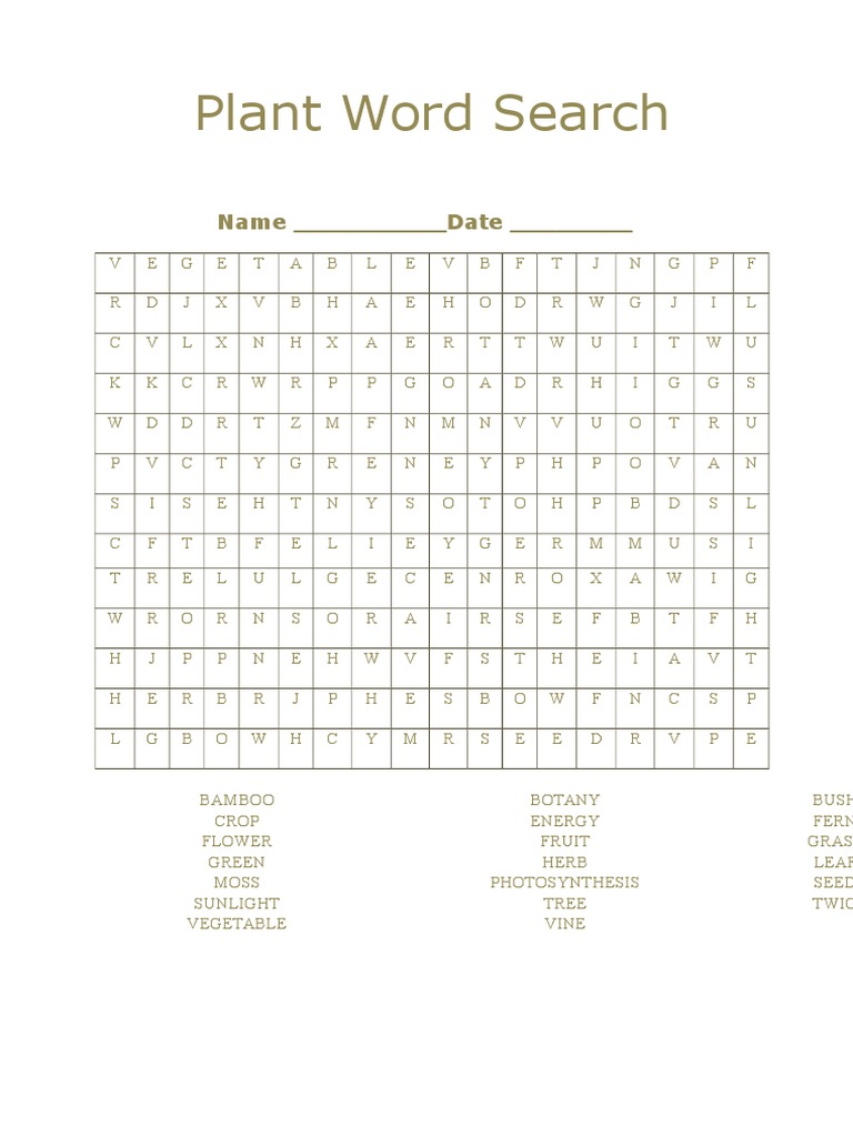 Plant Word Search Printable