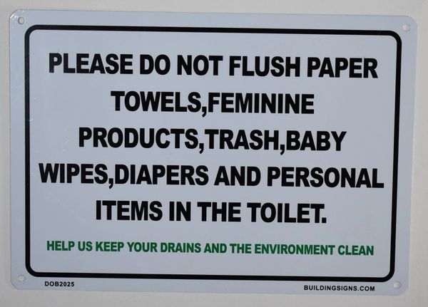 HPD SIGNSDO NOT FLUSH PAPER TOWELS IN THE TOILET SIGN (ALUMINUM) HPD SIGNS THE OFFICIAL STORE