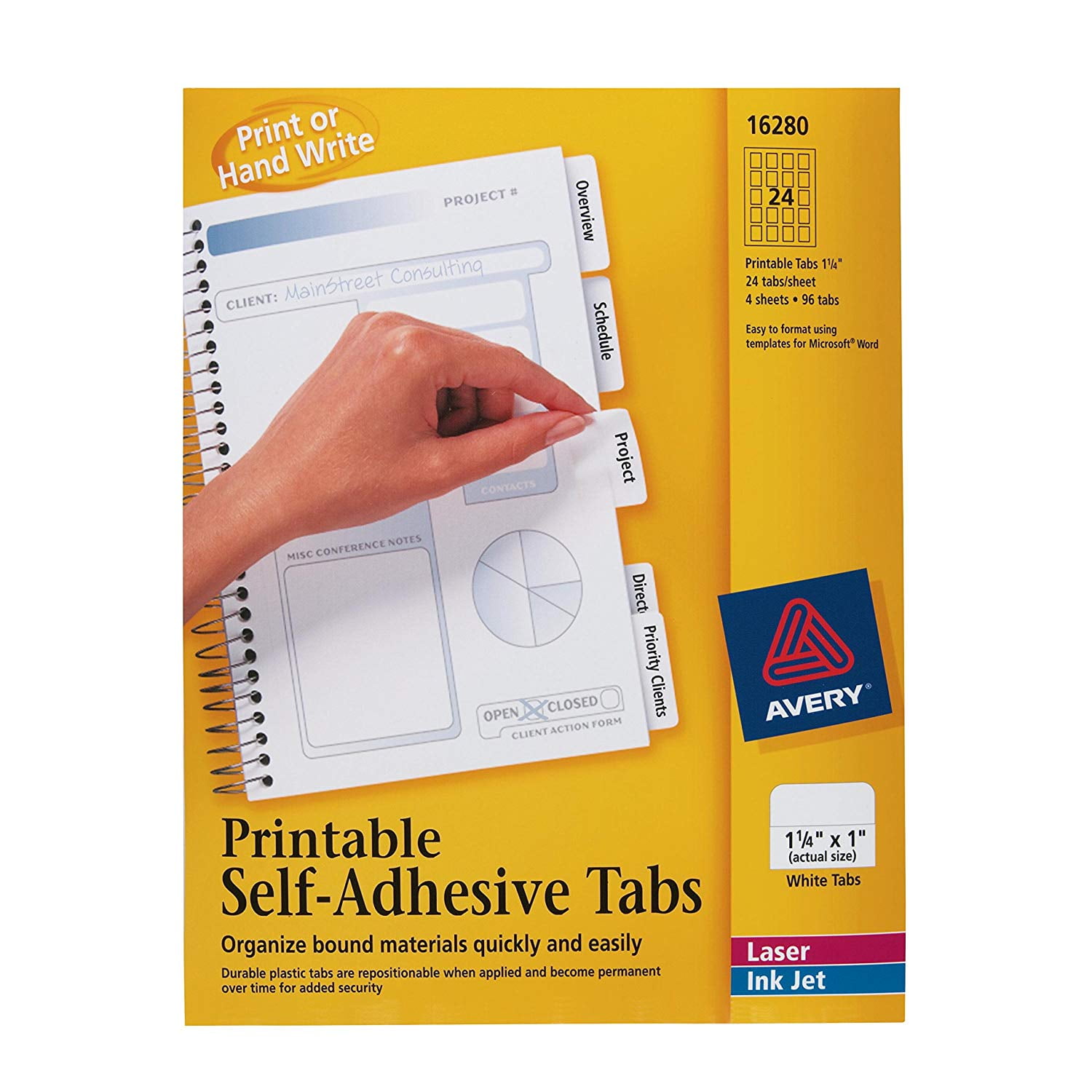 Avery Printable SelfAdhesive Tab, 11/4 Inch, White, Pack of 96
