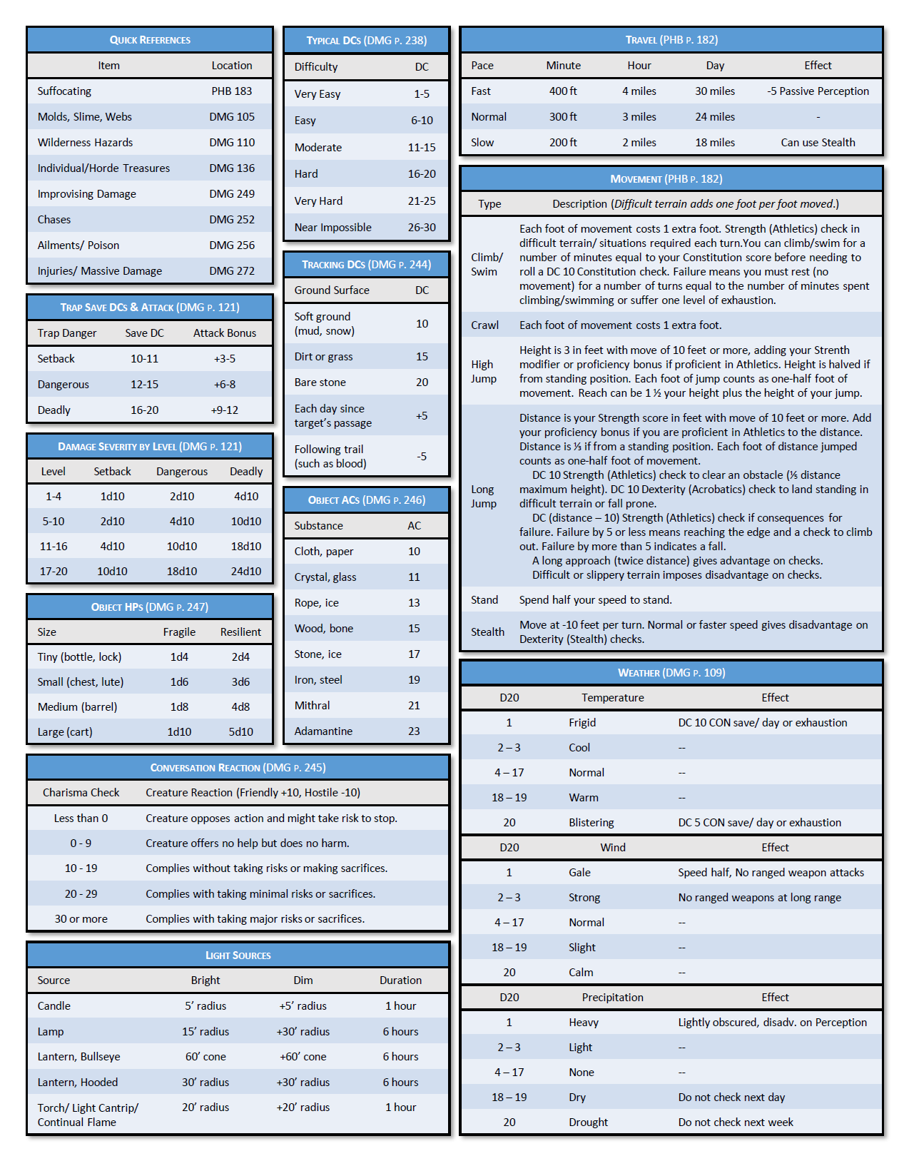 DM Screen dungeons and dragons dnd 5th edition 5e roll20 print printable pdf cheat sheet combat
