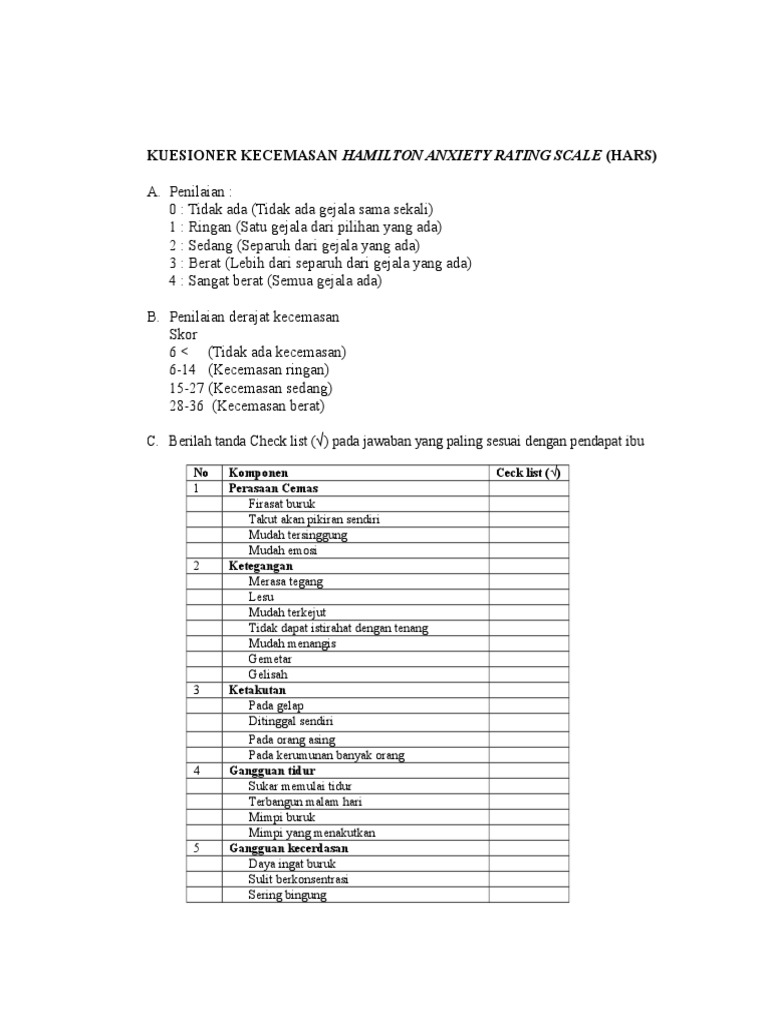 Kuesioner Kecemasan Hamilton Anxiety Rating Scale